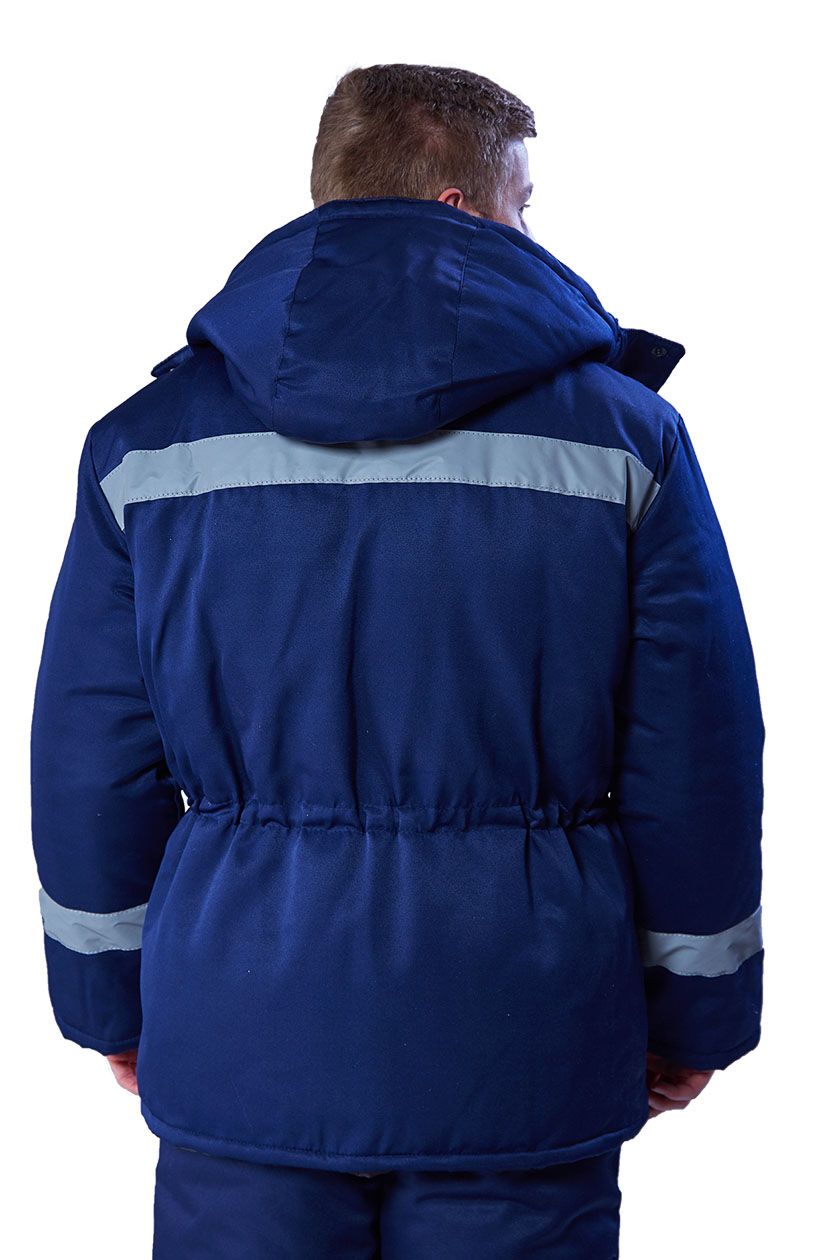Нижние карманы с объемами с двух сторон. Внутренний накладной карман. Съемный капюшон, пристегивается на кнопки. Рукава с трикотажными манжетами. По линии талии предусмотрена кулиса. СОП 50 мм расположен по шву притачивания кокетки и по рукавам вкруговую.