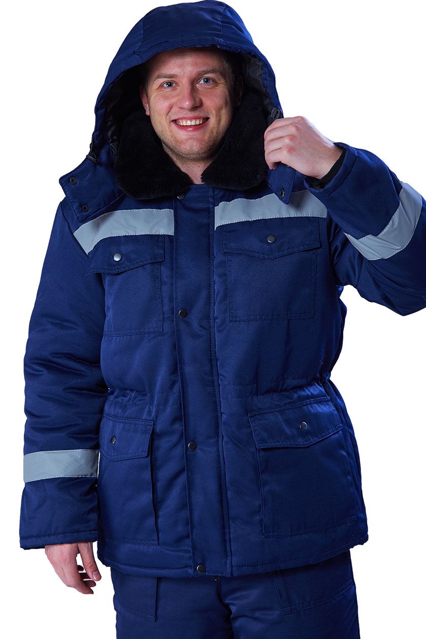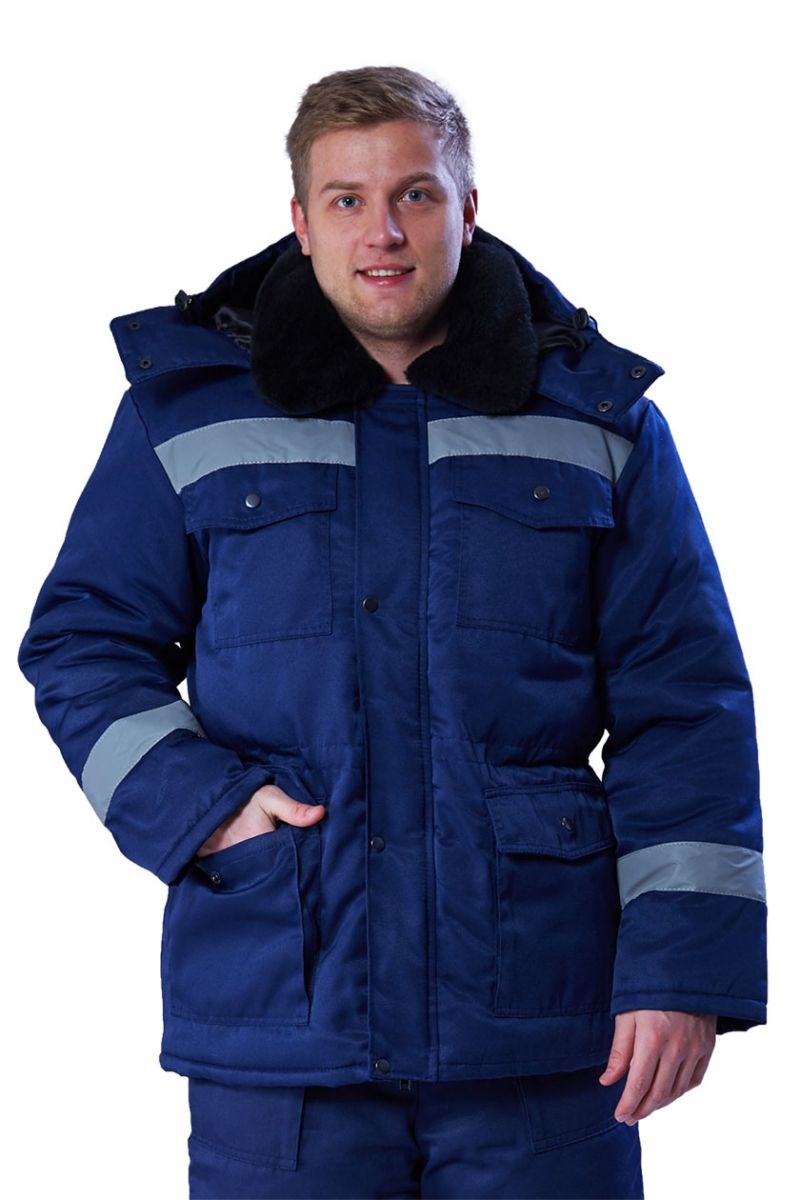 ➠ Куртка утеплённая с центральной застежкой на тесьму «молния» и ветрозащитной планкой, застегивающаяся на кнопки. Воротник отложной из искусственного меха. Два нагрудных накладных кармана и два нижних накладных кармана с фигурными клапанами, застегивающимися на кнопки.